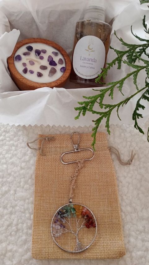 - Amuleto Árbol de la Vida con piedras de los 7 chakras → símbolo de equilibrio, energía y protección.